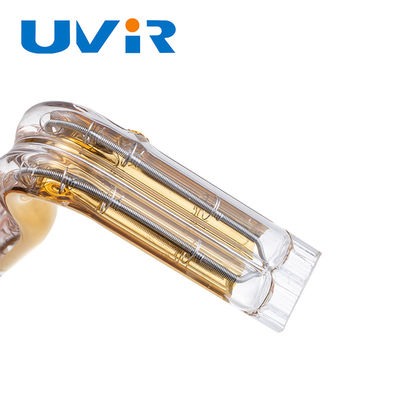 Tube chauffante halogène dorée en forme de L, résistante à la chaleur, lampe en quartz conçue pour les applications industrielles.